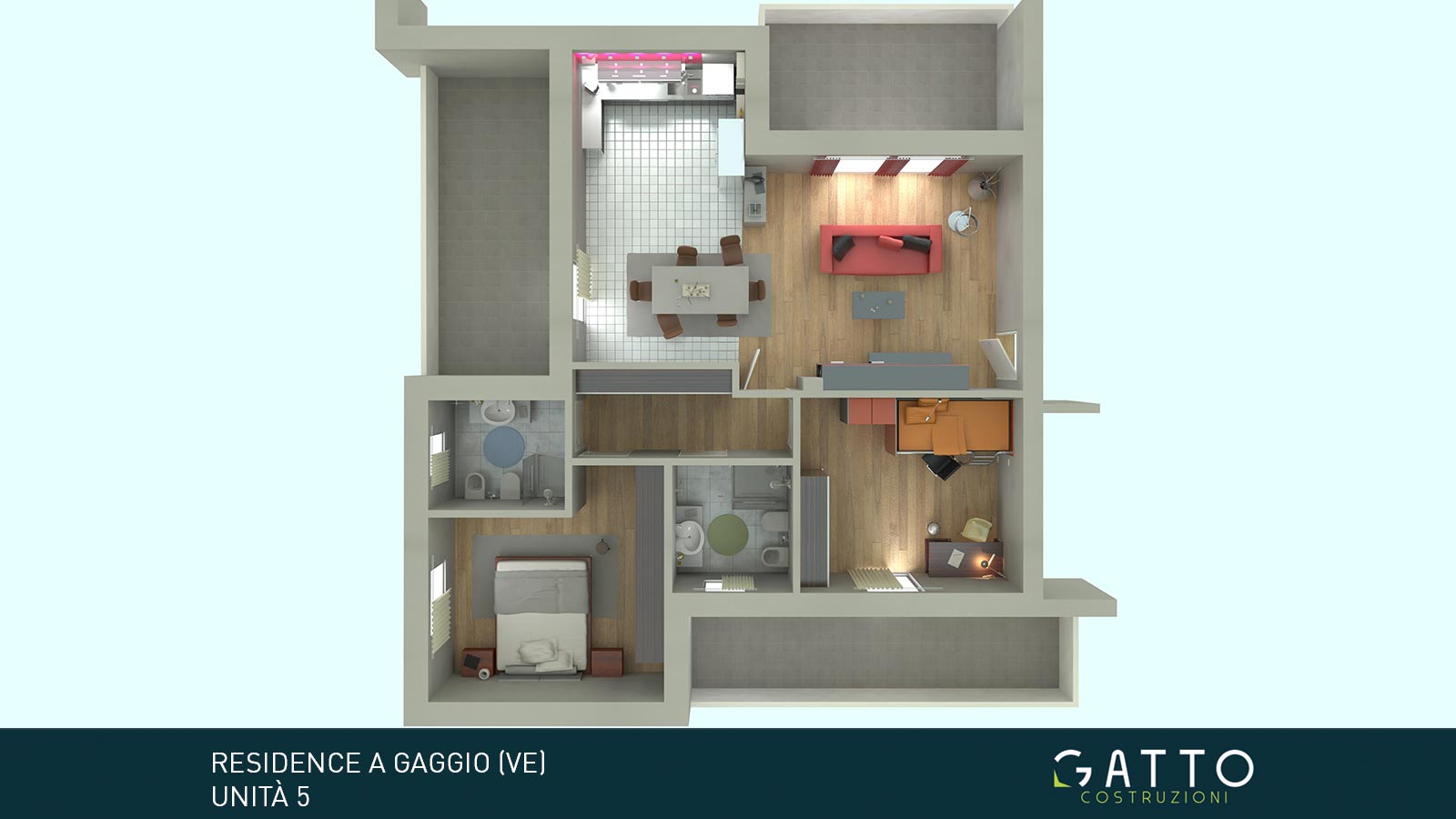 L’appartamento fa parte di un residence di nuova costruzione in zona residenziale a Gaggio, Marcon (Ve). Situato al piano secondo dell’estremità sud dell’edificio, l’appartamento ha la zona giorno rivolta a nord-ovest, mentre le camere sono rivolte a sud-est. L’unità si compone da: soggiorno e cucina open space, tre camere, due bagni, due terrazzi. Molto luminoso, l’appartamento dispone di tutti i comfort e le tecnologie per un buon risparmio energetico. Con garage privato.